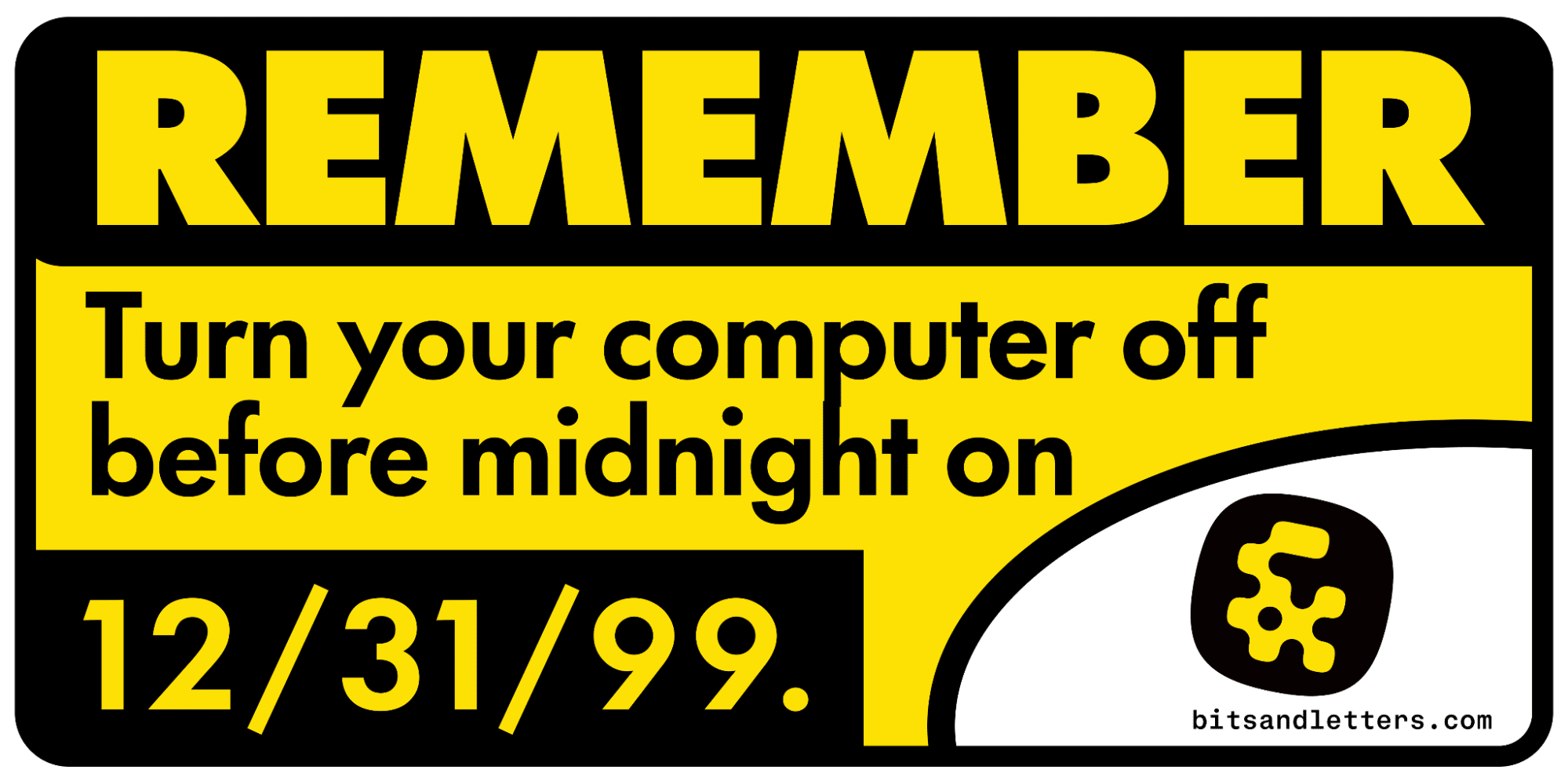 I saw a Bluesky post recently with a photo of a 1999-era beige PC with a Best Buy Y2K reminder sticker on it. Y2K things are hot right now, for some reason, and “turn your computer off” seems like good advice for 2025 (not to mention hilarious), so I’ve also printed a small batch of these: